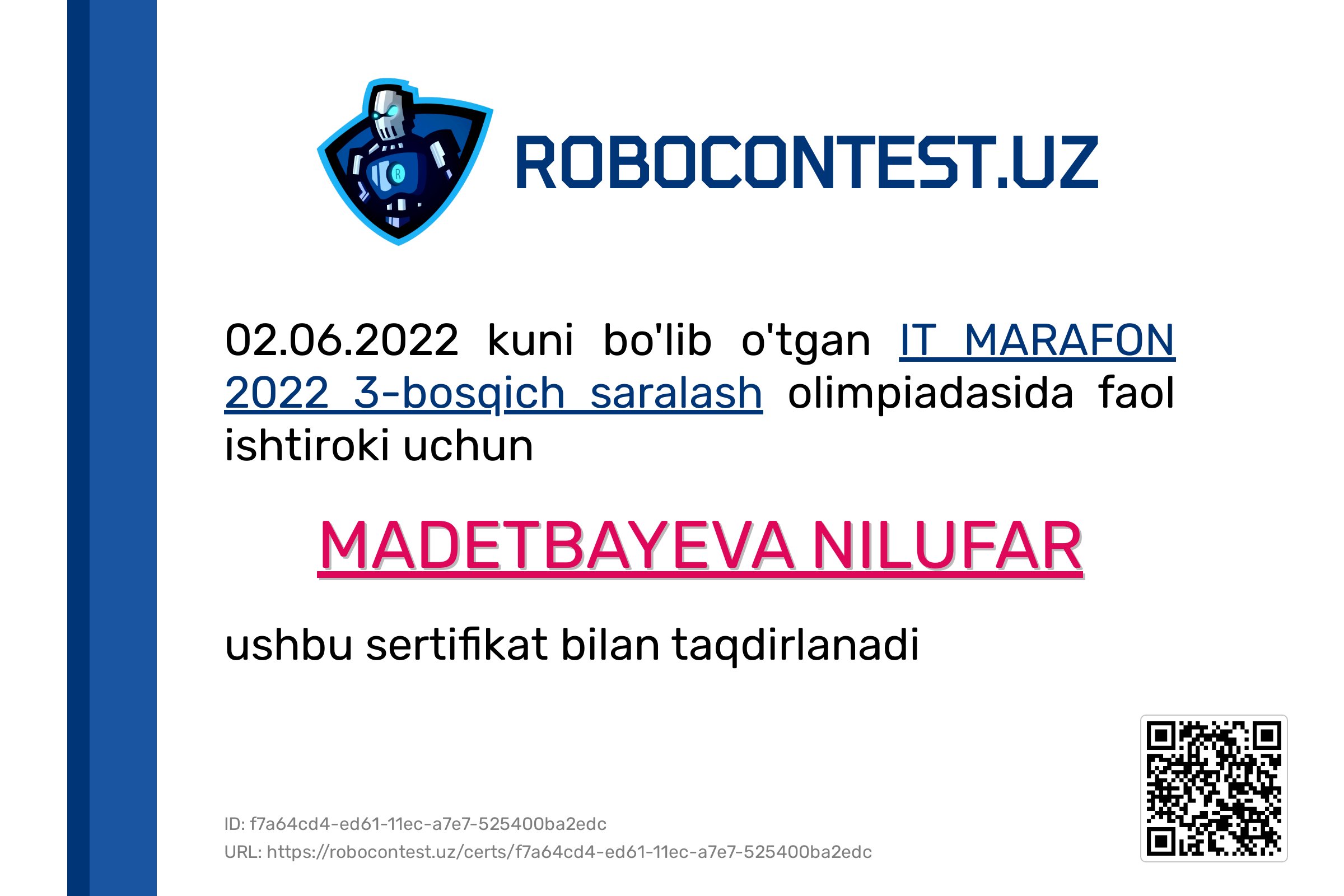 Profile picture of user Madetbayeva Nilufar